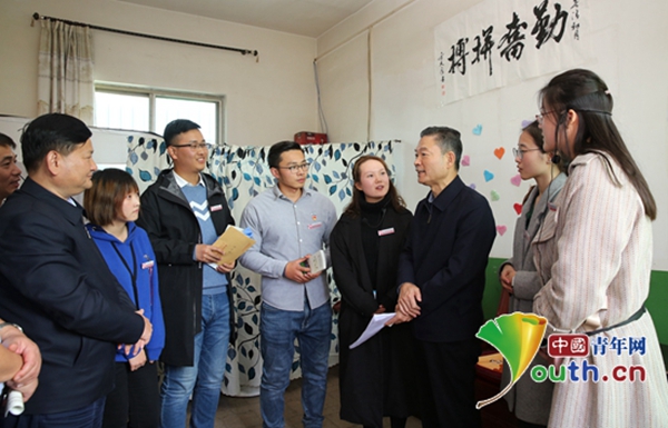 李兴旺等一行听取了服务地学校的基本情况介绍,并前往教室,看望了正在上课的研支团成员王卉、李珉梦。随后,李兴旺前往教师宿舍,了解研支团成员的生活情况。6名志愿者汇报了一个多月来的工作情况,并讲述期间的所见所闻。