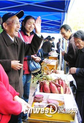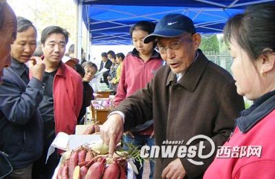 今年75岁高龄的西北农林科技大学薯类专家朱俊光研究员参加杨凌农高会“专家现场咨询”已15个年头了。15年来,他接待咨询的群众已达2万多人次,他所培育的“秦薯”系列红薯已在全国10多个省区推广面积达1000万亩,为农民增收5亿多元。这是一组他在第十五届农高会上向前来咨询的群众现场解答问题的照片。