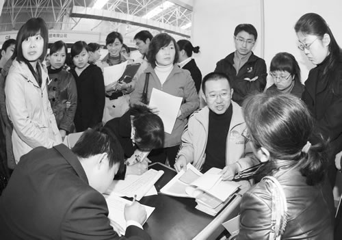 图为一家用人单位正在招聘学生
