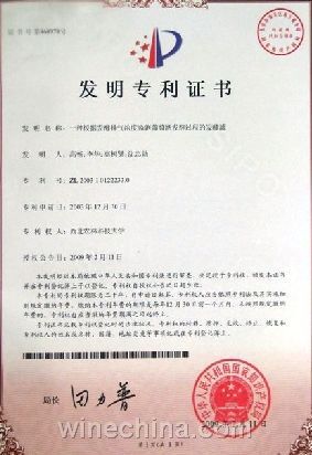 由西北农林科技大学葡萄酒学院高畅副教授、李华教授、高树贤教授、沈忠勋研究员发明的一种“根据发酵排气浓度监测葡萄酒发酵过程的发酵罐”获批国家发明专利,专利号为:ZL 2003 1 0122233 0。