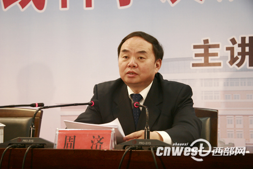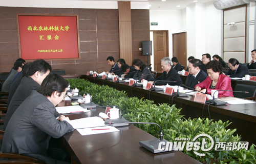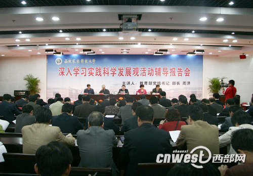 报告会前,周济听取了西北农林科技大学党委书记张光强、校长孙武学关于学校工作和开展学习实践活动的报告,他肯定了西北农林科技大学长期以来所取得的成绩,和学习实践活动中各项工作扎实推进的情况。在张光强、孙武学的陪同下,周济还参观了西北农林科技大学的科技推广展室、科研平台等,与推广专家、留学回国人员代表合影留念。