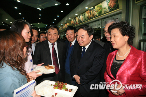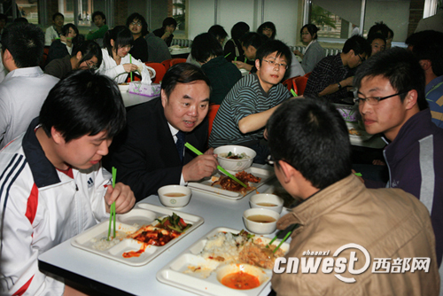 周济在西北农林科技大学食堂与前来就餐学生亲切交谈(支勇平摄)