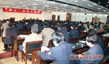 3月20日,杨凌示范区召开“两会”精神传达会。会上,全国人大代表、杨凌示范区党工委书记、西北农林科技大学党委书记张光强传达了十一届全国人大二次会议精神和吴邦国委员长出席陕西代表团审议讲话精神,全国人大代表、西北农林科技大学资源环境学院教授郑粉莉对十一届全国人大二次会议精神以及陕西代表团的建议提案等相关情况进行了补充,全国政协代表、西北农林科技大学动物科学学院教授杨公社传达了全国政协十一届二次会议精神。大会由西北农林科技大学常务副书记王万忠同志主持。
