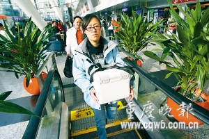 造血干细胞从提取成功,到送达重庆,只花了5小时。骨髓比较容易凝固,每隔一个小时,传送者就必须将箱子摇晃10~20秒。