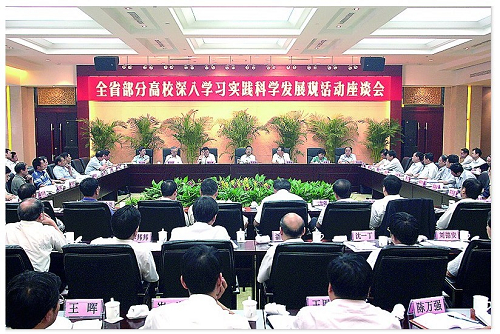 6月3日下午,省委召开全省部分高校深入学习实践科学发展观活动座谈会。省委书记、省委学习实践活动领导小组组长赵乐际出席会议并讲话,他强调,要立足高校实际开展学习实践活动,积极践行科学发展观,切实加强作风建设,推动高校又好又快发展,为建设西部科教强省作出新的贡献。