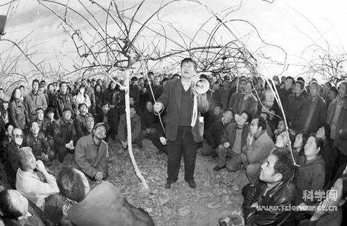西北农林科技大学的教授在向农民传授最新的农业科技知识 支勇平/摄