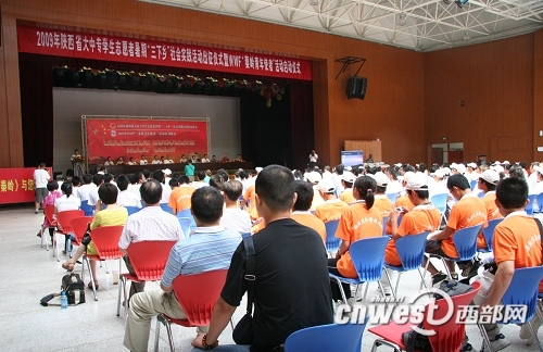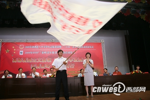 今天(7月13日),2009年陕西省大中专学生志愿者暑期“三下乡”社会实践出征仪式暨秦岭青年使者活动启动仪式在西北农林科技大学举行。这标志着,我省20余万大学生志愿者踏上了暑期奔赴基层服务群众的征程。