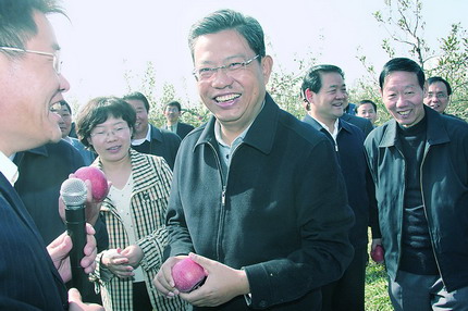 西北农林科技大学白水苹果试验站是目前国内唯一的苹果专业试验场站,在技术研究、教学实习、科技示范和人才培养方面发挥着积极作用。赵乐际先后察看了果树栽培实验、品种树形展示、老果园改造示范和育种实验室,了解不同灌溉技术试验对比效果、新优品种培育进展、老果园改造技术推广、有机肥料使用监测等情况,并走进教室向果农学员询问学习收获。他说,种好苹果要靠科技、靠专家,必须不断吸收新技术、提高务作水平,才能形成标准、做出品牌,进而开拓国内外市场、增加果农收入。科技人员要主动深入一线,围绕优势特色产业发展和干部群众生产需求,在经济建设主战场施展才华、建功立业。市县政府要加强沟通协调,组织群众参加技能培训,不断提高劳动者素质。
