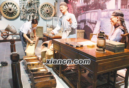 在汉唐厅当然要看构思精巧的曲辕铁犁、三脚耧车、龙骨水车,有些农具至今仍在部分地区的农田发挥作用。宋元、明清时期农业科技迅速发展,脚踏纺线车、织布机、牛拉水车、脱壳机、风车,令人眼花缭乱,惊叹先民的智慧。
