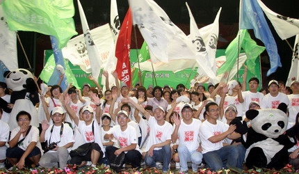 7月17日,“关爱大秦岭保护母亲河”2010年“WWF(世界自然基金会)秦岭青年使者”活动启动仪式暨西北农林科技大学大学生志愿者暑期“三下乡”社会实践出征仪式,在西北农林科技大学举行,来自清华大学、台湾大学、西北农林科技大学等全国15所知名高校的200余名志愿者将走进秦岭、走进湿地、走进城市,开展环保、支农、调研等实践活动。(本报记者 曹陇生 肖晓良摄)