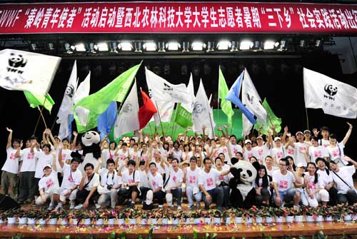 人民网陕西频道7月18日电 (记者 倪纲锋 通讯员 支勇平)2010年WWF秦岭青年使者活动启动仪式暨西北农林科技大学大学生志愿者暑期“三下乡”社会实践活动在陕西杨陵正式启动。来自清华大学、复旦大学、台湾大学、西北农林科技大学等全国15所知名高校的200多名志愿者将走进秦岭、走进湿地、走进农村、走进城市,开展环保、支农、调研等实践活动,实现海峡两岸学子共同关注和促进秦岭生态环境的可持续发展。WWF 秦岭青年使者活动服务队将于今日正式起程,奔赴服务地开展为期10天的志愿服务工作。