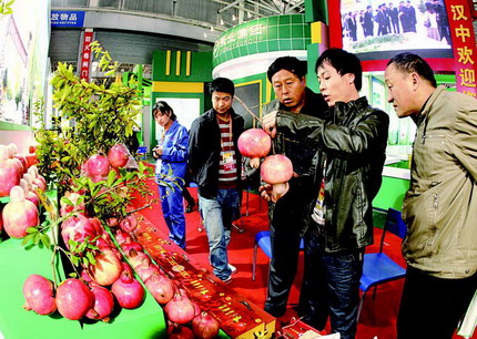 在农高会实用馆里,礼泉县展台前摆放的高科技农业产品带来的效益就是不一样,一个石榴就有3斤重,以其果形大、色泽艳,酸甜可口的御石榴,吸引着参观者驻足观看了解