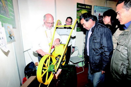 在第十八届杨凌农高会展馆里,以色列客人饶有兴趣地参观由西北农林科技大学提供的农业数字化精准管理模型。