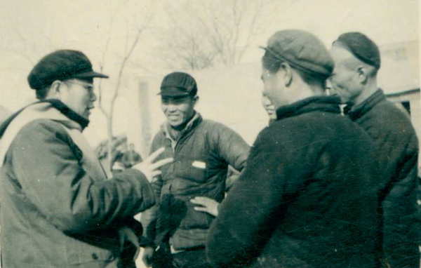 1958 年,康迪(左一)在商县和农民亲切交谈