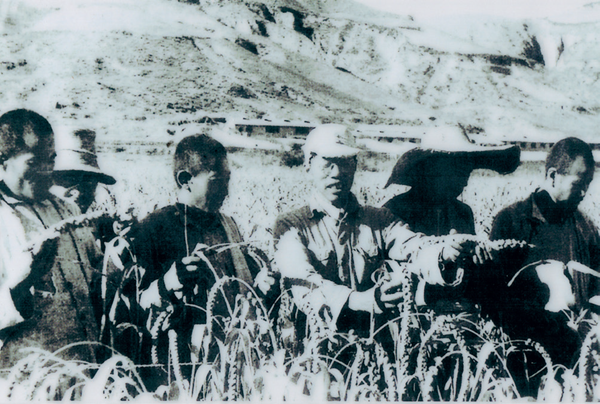 康迪(前排中)在延安期间指导农民生产