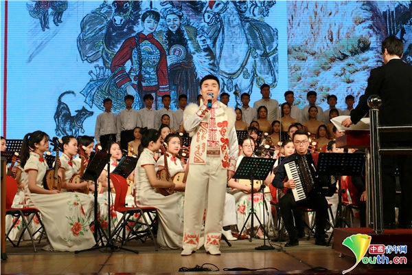 大学生艺术团阮乐团为现场师生们带来了满含异域风情的《多姆拉协奏曲》,伴随着《阮之火》的曼妙旋律,听众们被带到弗朗明哥般炙热火焰之中,阮乐合奏《丝绸之路》诉说了在这条路上中西方文化的融会贯通,一首陕北民歌《赶牲灵》,经由大学生阮乐团和大学生合唱团同学们的共同演绎,展现出西北土地淳朴浓厚的民风特点。
