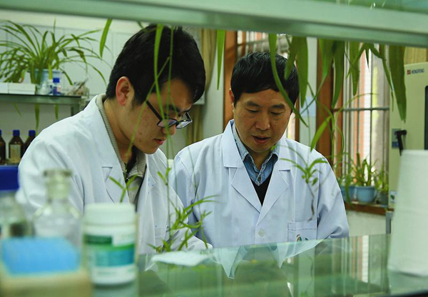 康振生院士(右)正在指导学生