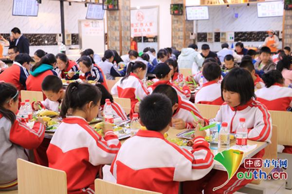 图为参加访学活动的孩子们在西北农林科技大学餐厅就餐。姜旭言 供图