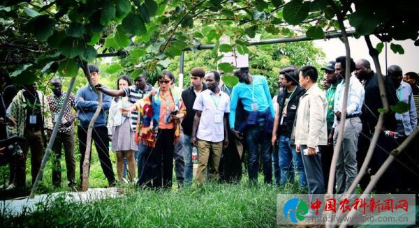 在位于陕西眉县横渠镇青化村的西北农林科技大学猕猴桃试验示范站,留学生们兴趣盎然,了解由学校专家教授+地方农业技术干部+职业农民+果农的“田间最后一公里”校地联合农技推广模式,了解猕猴桃试验站在建园管理、病虫害防治、科学施肥、储藏加工等环节的技术。驻站的猕猴桃专家杨开宝教授忙着回答留学生们的问题,“你们现在品尝的‘农大金猕’是西北农林科技大学培育的新品种,属于中华猕猴桃,生长在秦岭以北,营养丰富、口感香甜,具有多种保健功效。”