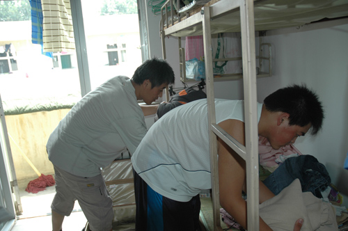 为确保2008级新生顺利入住公寓,学生社区中心在暑期完成了新生宿舍的粉刷、公寓楼内水电设施、管道、木泥、家具等的维修、卫生清扫等工作,粉刷新生宿舍939间,清理、维修新生宿舍1300余间;清洗新生宿舍窗帘1300余幅;更换维修窗纱、门纱2200m2;配合动力中心为学生宿舍安装风扇2500台;为所有水房补装了淋浴喷头;对水房年久失修的闸阀进行了换修改造;为新生宿舍配备摆放了1300余套卫生工具;补充调配学生自习凳820余把。同时根据学校招生计划,制定了2008级新生住宿方案。