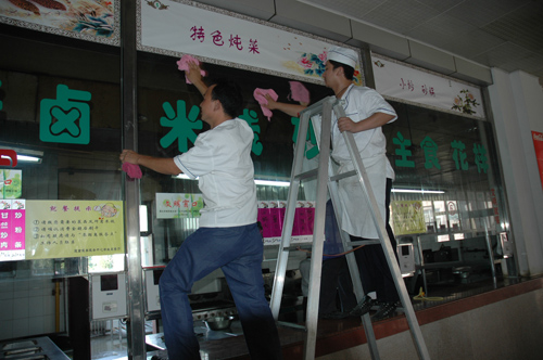 为了确保新生及家长到校后能及时吃到可口的饭菜,饮食服务中心做了大量的前期准备工作。从8月18日开始,先后完成了大宗物资采购、餐厅卫生保洁、餐具清洗消毒等工作,至8月24日上午,所有迎新餐厅均已投入运营。承担迎新任务的为北校区东区第三、第四餐厅、清真餐厅;北校区西区第六、第八餐厅;南校区南苑餐厅、清真餐厅。其中东区第四餐厅、清真二餐厅,西区第八餐厅及南校区清真餐厅为值班食堂。迎新餐厅每天营业时间为6:30—22:00,保证新生及家长随时到校,随时可以吃上热饭热菜。仅8月26日1天,饮食服务中心就接待就餐人员1万余人次。
