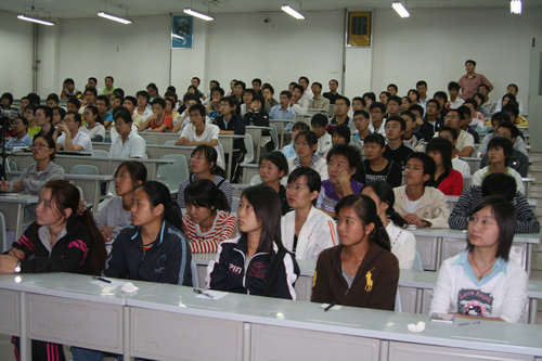 为了使2008级新生尽快适应大学生活,了解自己的专业以及学校的教学管理规章制度,8月29日晚,教务处处长王国栋教授在8号教学楼为2008级新生做学籍教育报告,来自18个院系5000多新生听取了报告。