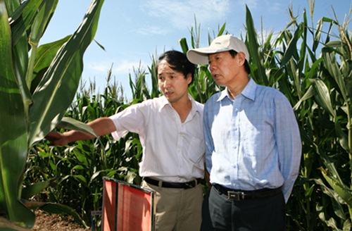 据了解,长期以来,玉米育种一直是我校的优势学科。我校育成的武字号(武105、武109等)和K字号(K14 、K12和K22等)自交系10多个,培育陕单号玉米杂交种20多个(陕单9号、陕单902、陕单911),5个玉米品种获得国家植物新品种权保护,先后承担国家、部、省级各类研究项目40多项,获得省级以上成果奖20余项。其中高产、优质、多抗玉米杂交种陕单911,1999年获农业部农作物品种一等后补助,“高产、稳产、优质、高配合力自交系K12和K22的选育与利用”2002年获教育部中国高校科技进步二等奖,“玉米自交系k12、k22和陕单902杂交种选育与推广”项目获得陕西省2005年科学技术一等奖,并评为“十五”期间陕西省十大农业科技成果。这些杂交种和自交系以及取得的成果为陕西乃至全国玉米生产做出了重大贡献。
