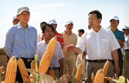 9月3日下午,孙武学校长、吴普特副校长带领科研处、推广处有关领导及专家到农学院农作物示范园调研玉米育种工作。孙校长一行实地考察了玉米新品种(组合)展示鉴定试验和栽培试验,随后与农学院全体玉米育种科技人员就提高玉米育种科技创新能力、建立高效玉米育种技术体系进行了座谈。