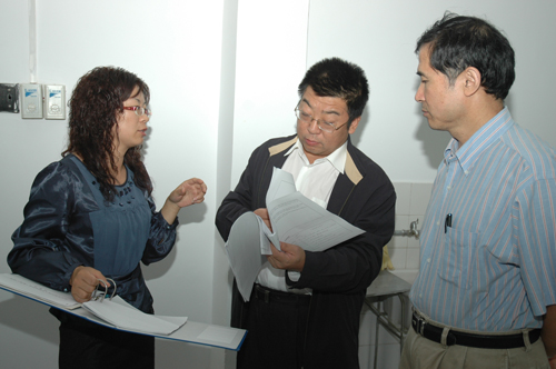 副校长侯曦、吴普特在了解资环学院引进人才周平的科研情况--靳军摄影