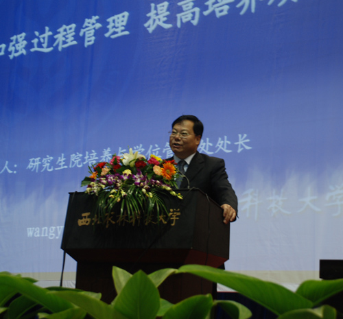 随后,研究生院副院长杨家荣教授、研究生院培养与学位管理处处长王玉环分别为硕士研究生作了题为《改革培养机制,提高培养质量》和《加强过程管理,提高培养质量》的报告。