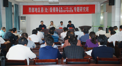 9月16日上午,由农业部主办、我校承办的西部地区县(处)级农业领导干部发展“一村一品”推进农业产业化经营专题研究班开班仪式在我校举行。中央农业干部教育培训中心副主任卢丙来、我校常务副校长赵忠、成教学院有关负责人以及来自新疆、宁夏、四川、山西等10个省份的30多名学员参加了开班仪式。