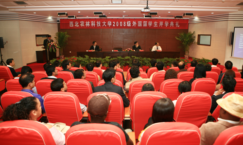 宋卫宁教授代表留学生导师寄语留学生,希望他们尽快适应环境,投入到学习中去,并祝愿他们在学校生活愉快,学有所成;来自蒙古的Ebe同学代表2008级留学生发言,她表示一定会努力学习,当好两国文化交流的文明使者;安迪同学代表2007级留学生感谢学校一年来的辛勤培育,当他真诚地表达“今天我以西北农林科技大学为荣,明天西北农林科技大学以我为荣”的愿望时,赢得了全场掌声。