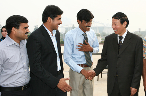 孙武学校长与留学生亲切交谈