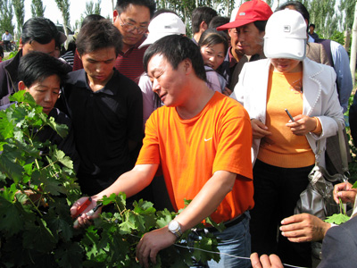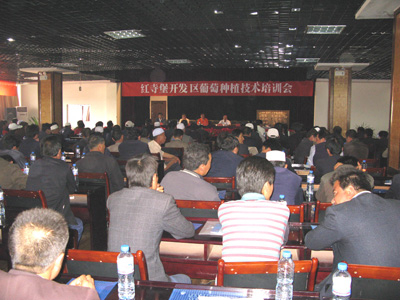 会后,李华副校长、张振文教授应宁夏林业厅、吴忠市红寺堡开发区管委会邀请,为开发区林业技术干部、葡萄酒公司技术人员、葡萄种植户共200多人,进行了葡萄管理专题会议培训和现场修剪技术指导,得到了当地政府和广大农民的高度赞扬,增强了当地政府、企业和农民发展葡萄产业的信心和决心。