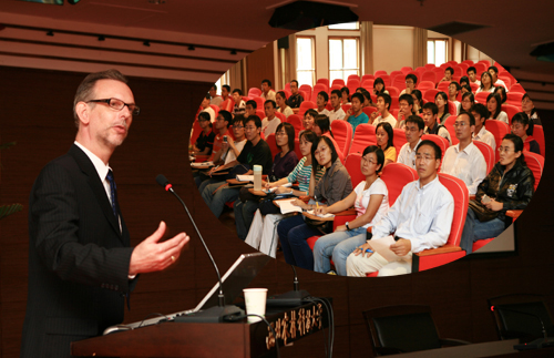 美国北卡罗来纳大学彭布洛克分校副校长James Callaghan博士为我校学生作报告