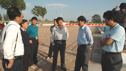 校科技推广处负责人陪同孙武学校长基地检查。