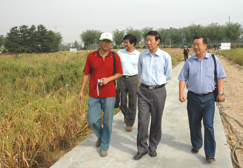 孙武学听取了基地负责人、国家小宗粮豆品种科技示范园项目首席专家、农业部小宗粮豆专家指导组组长柴岩教授的工作汇报,并深入田间,实地察看了荞麦、糜子、草豌豆、木豆等作物的试验情况。看到有研究生正在糜子试验田作田间调查,孙武学亲切地询问他们的生活、研究情况;看到许多豆子品种正在室外晾晒,孙武学向柴岩了解豆子生产、加工、推广及出口情况,他指导科研人员做好豆种的展示工作;看到师生们的伙食情况很不错,了解到原种场对我校师生们在生活、工作等方面给与了真诚的关心和支持,孙武学向原种场负责人表示感谢。