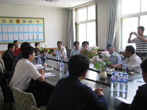 孙武学校长听取周占琴教授、呼天明教授和北方牧业公司负责人的介绍