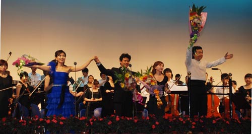 音乐会在一首罗马尼亚乐曲《春天》中拉开帷幕;节奏鲜明,欢快活泼的美国作品《雪橇》、约翰•施特劳斯的作品《闲聊波尔卡》给大家以轻松愉悦的感受;中华民族的传统名曲《梁祝》让大家从音乐中感受了凄美的爱情故事;乐曲《山丹丹开花红艳艳》引起了全场师生的共鸣,体育馆里响起了热烈而持久的掌声。青年歌唱家鲜于越歌和杨洋分别演唱了歌曲《我亲爱的爸爸》、《我爱你,中国》和《怀念战友》、《我的太阳》等曲目,雄浑的曲调,美妙的歌声将音乐会推上了高潮。最后,在一曲《饮酒歌》中音乐会落下帷幕。全场再次掌声雷动,久久不息,送去的鲜花表达了学子对艺术家精彩演出的感谢。
