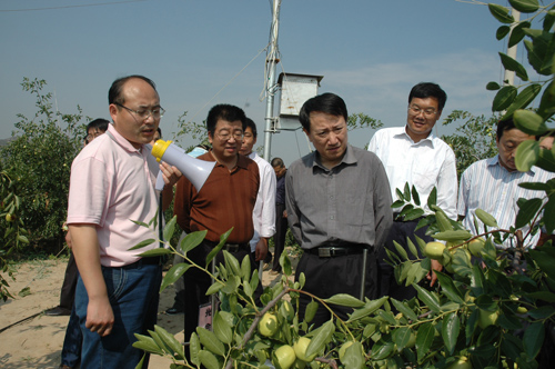 9月17日,陕北山地红枣节水灌溉现场观摩会在我校米脂孟岔红枣示范基地召开,校长孙武学、陕西省科技厅厅长张炜出席并讲话,榆林市副市长兰新哲致辞,陕西省科技厅副厅长许春霞主持会议,我校副校长、“陕北山地红枣集雨微灌工程技术研究与示范”项目主持人吴普特研究员介绍了红枣节水技术及试验示范情况。全省各市(区)科技局领导和部分红枣主产县、苹果主产县和茶叶主产县科技局的代表100多人参加了会议。