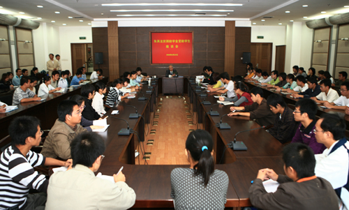 座谈会上,受助学生纷纷发言,向朱英龙先生汇报自己的学习和生活等情况,表达了对朱先生的敬仰和感激之情,并纷纷表示要牢记朱先生的教诲,努力学习,乐观向上,铭记先生恩情并将爱心永远传递下去。朱英龙先生在听了同学们的发言后,向与会的同学们提出了希望:一是希望受助学生调整心态,克服困难,用感恩的心、知足的心、包容的心和善解的心来面对一切;二是要珍惜机会,在大学阶段利用空闲时间多学一些其它学科的知识来充实自己,以适应社会的需要和发展;三是希望同学们能够在不影响学业的前提下,多参加一些课外活动和社团,与更多的学生进行交流,增进友谊,相互帮助和支持,这样将来会成为一种宝贵的财富,会让同学们受益匪浅。朱先生的讲话赢得了同学们阵阵热烈的掌声。
