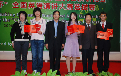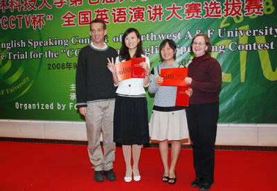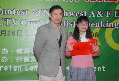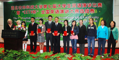 本次演讲比赛共有来自外语、动医、经管、资环、生命、植保、信息、园艺等8个院系的13位选手参加。演讲比赛分命题演讲、即兴演讲和回答问题3个环节。命题演讲环节选手们围绕“1+1=2”的主题来展示、论述自己的观点;即兴演讲环节选手们对北京奥运会的成功举办、“神舟七号”飞船成功发射、食品安全等热点问题阐述自己的看法;在回答问题环节,选手们回答了两位外教的提问。激情的演讲、流利的口语、鲜明的观点不时赢得在场师生阵阵热烈的掌声。经过激烈角逐,外语系罗丹同学获得一等奖和1000元奖励,动医学院王谷雨同学、外语系刘梦茜同学获得二等奖和每人600元奖励,经管学院高佳同学、外语系葛亮同学、资环学院徐梦同学获得三等奖和每人300元奖励。