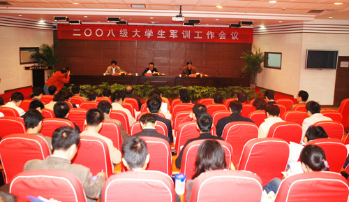 徐养福副书记主持会议,校党委副书记、军训工作领导小组副组长杨景昆宣读了“关于做好2008级新生集中军事训练工作的通知”,常务副校长、军训工作领导小组组长赵忠在讲话中要求各学院和相关部门要注意抓好安全管理工作,做好组织协调工作和后勤保障工作,加强宣传,营造良好的军训氛围。