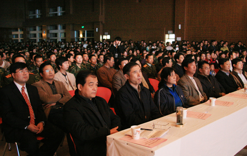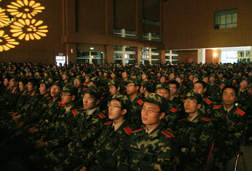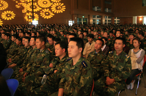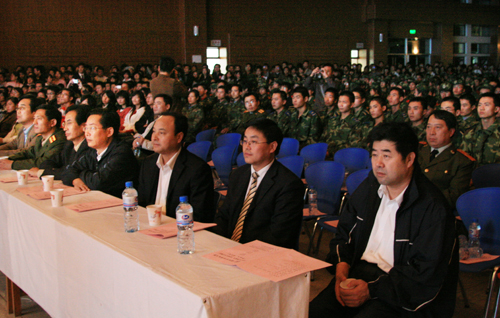 担负我校2008级新生军训任务的解放军某部教官与我校师生一同观看了晚会