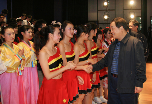 晚会结束后,张光强、王革、侯曦等校领导亲切慰问了演出的师生,并和大家一起合影留念。