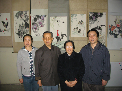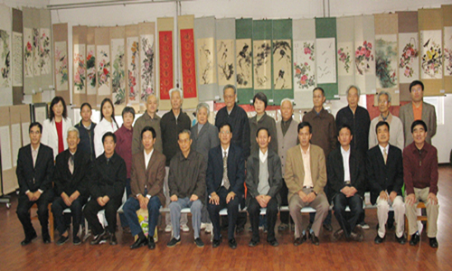 姜肇滨先生的夫人及子女与老年大学校长翟绪发合影 省老年大学领导观看画展 参观人员合影
