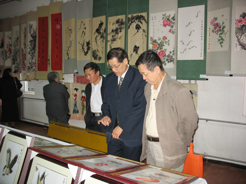 为庆祝老年节及我校老年大学成立十周年,我校老年大学于9月28日至10月3日特举办了“老年大学国画专业书画展”。 书画展分为两个展室,第一展室为老年大学教师姜肇滨教授遗作画展;第二展室为老年大学师生国画作品展。 9月28日上午,校党委副书记徐养福及省老年大学办公室主任郑鑫利等领导参观了画展。