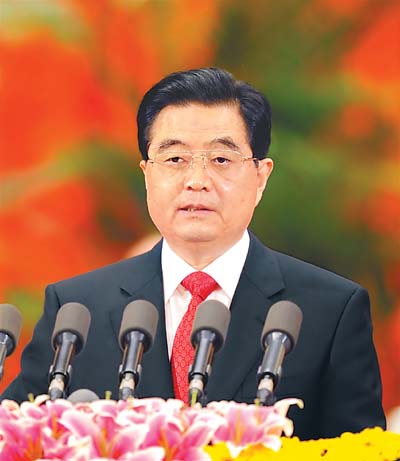 10月8日,中共中央、国务院、中央军委在北京人民大会堂隆重举行全国抗震救灾总结表彰大会。中共中央总书记、国家主席、中央军委主席胡锦涛在会上发表重要讲话。新华社记者 高 洁摄