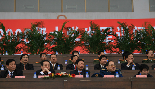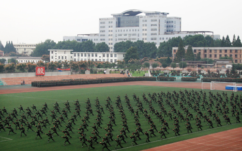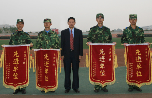 10月10日上午,随着军训阅兵式在北校区体育场的隆重举行,为期12天的我校2008级新生军训圆满结束。校领导孙武学、赵忠、王革、杨景昆,94028部队副政委王新宇上校、政治部副主任万旭辉上校、教官领队韩锋中校,各院(系)院长、书记及军训团全体干部参加阅兵式。