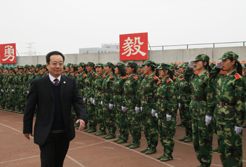 孙武学校长在讲话中代表校党委、校行政向中国人民解放军94028部队的各位教官和学校广大参训干部、后勤服务工作人员表示感谢,向刻苦训练的全体同学致以亲切的问候。他说,新生们威武的军姿和整齐的队列,向学校展示了这次高质量的军训成果,展示了新一届学子崭新的精神风貌,共同交出了步入大学殿堂后一份优秀答卷。希望同学们在今后的学习和生活中,继续发扬军训精神,保持军训作风,自强不息,追求卓越,发愤学习,严格要求自己,努力成为国家和社会的栋梁之才,为社会进步和国家的富强作出自己的贡献!
